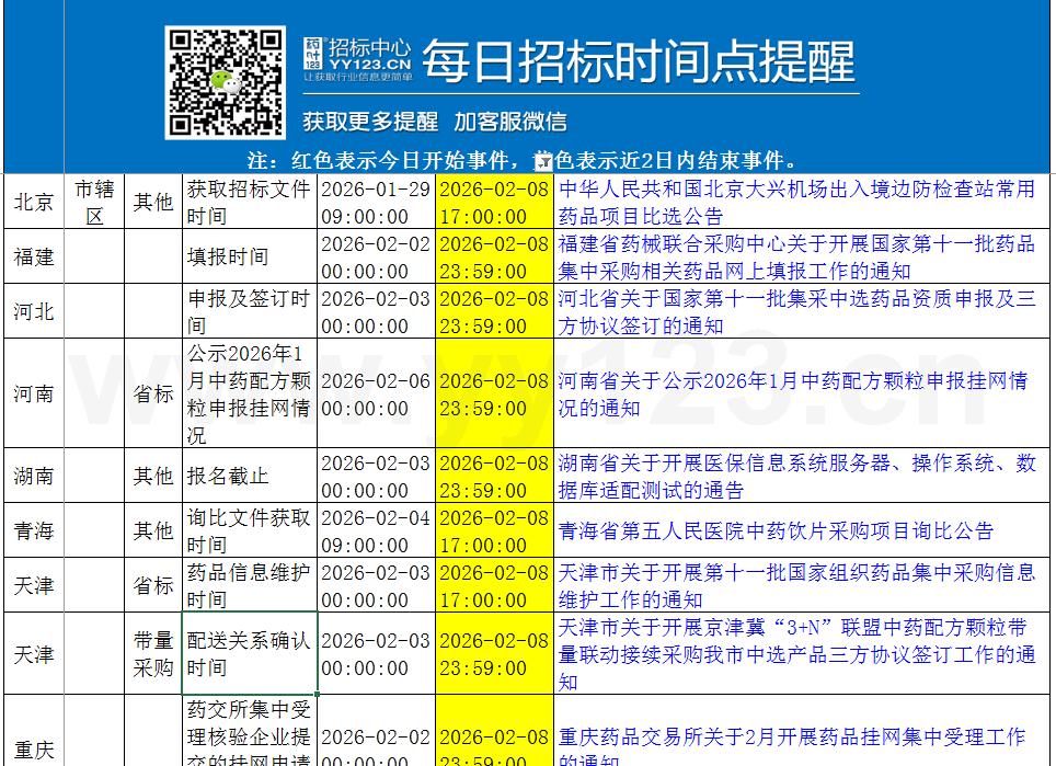 今日政策汇总与招标时间点提醒2月7日-2月9日
