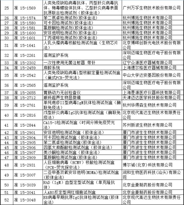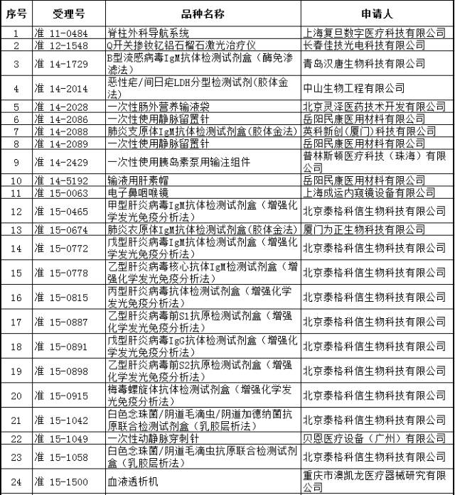 昨天,CFDA发布55个医疗器械准产批件通知,33个为首次注册,22个为到期换证产品。 这55个产品中,体外诊断试剂产品多达39个,占据此次名单大半!其中,北京泰格科信生物科技有限公司获10个批件,厦门市波生生物技术有限公司获6个批件,杭州博拓生物技术有限公司获5个批件。另,无源类医疗器械产品和有源类医疗器械产品各获批8个证。