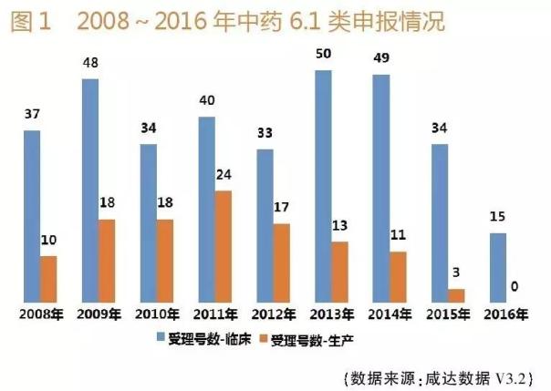 根据咸达数据V3.2,2016年6.1类中药申报临床和生产为历史新低,这与2015年临床自查核查有相关性,7月22日临床自查核查名单6.1类注册申报共61个受理号,公告撤回36个,已经制证完毕但无获批生产预计是主动撤回的受理号15个。只有1个产品金花清感颗粒目前进入药物临床试验数据现场核查计划公告(第2号)。若古代经典名方可以免临床,那么这些自查核查撤回的产品若上了古代经典名方目录,是否就有望免临床直接申报生产?同样地,凡是获批临床且在古代经典名方目录的产品是否都可以直接申报生产了?