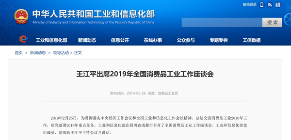 据工信部网站消息,工信部2月25日召开全国消费品工业工作座谈会,工业和信息化部党组成员、副部长王江平主持会议并讲话。