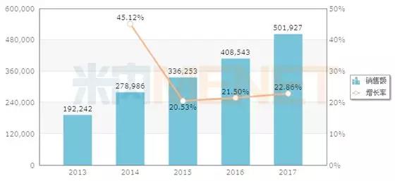5月15日,京新药业发布公告称,公司收到国家药监局批准签发的瑞舒伐他汀钙分散片(规格10mg)药品注册批件。据米内网数据,2017年中国公立医疗机构终端瑞舒伐他汀片剂销售额为50.19亿元。 瑞舒伐他汀钙分散片是一种治疗高血脂药物,适用于经饮食控制和其它非药物治疗(如:运动治疗、减轻体重)仍不能适当控制血脂异常的原发性高胆固醇血症(IIa 型,包括杂合子家族性高胆固醇血症)或混合型血脂异常症(IIb型)。瑞舒伐他汀钙分散片遇水快速崩解,尤其适合老人或吞服困难的患者,提高患者服药的顺应性。 中国公立医疗机构终端瑞舒伐他汀片剂销售情况(单位:万元) |