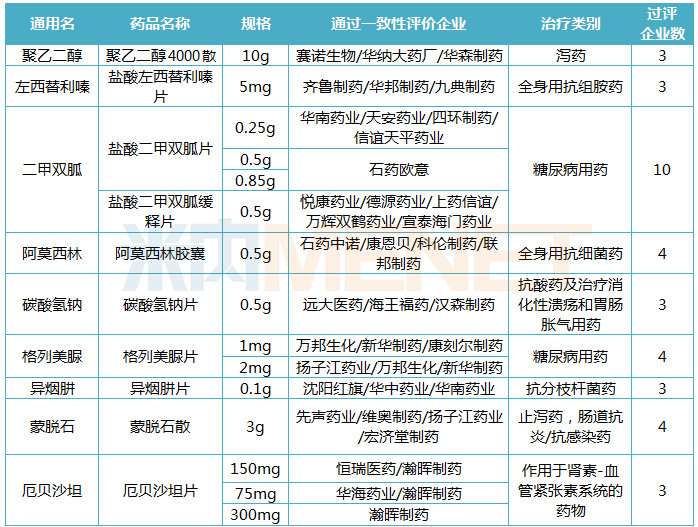 据米内网数据,目前已有17个通用名品种通过或视同通过一致性评价企业达到3家或以上,其中7个品种有望纳入第二批带量采购。近期,多个省市的药品招采平台相继暂停了“未通过一致性评价,且已有其他3家企业通过一致性评价”药品生产企业的网上采购资格,涉及多个“4+7”品种。在“4+7”带量采购执行效果超预期下,“4+7”品种未中选、未过评、同适应症同机制类药品的招标采购与临床使用均受到不同程度的影响。 17个品种过评企业达3家 据米内网统计,截至2019年5月24日,已有130个品种通过或视同通过一致性评价,涉及281个品规。其中,有17个通用名品种通过或视同通过一致性评价企业达到3家或以上。 过评企业达3家的品种