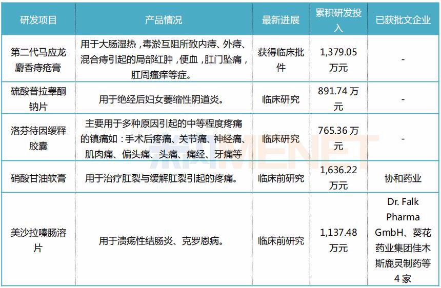 (来源:MID药品索引综合数据库) 表3:马应龙药品研发情况