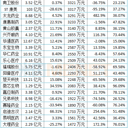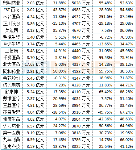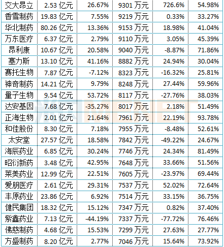 日前,上市公司三季报业绩已全部披露完毕。据统计,A股297家医药企业中,恒瑞医药、迈瑞医疗、云南白药等5家净利润突破30亿元;有34家毛利率超过80%,而我武生物、微芯生物、康辰药业、奥赛康等9家毛利率更超过90%;上海医药、九州通、白云山等6家营收均超过500亿元。 净利润TOP10:恒瑞、迈瑞、白云山等5家超30亿 医药企业2019年前三季度净利润TOP10