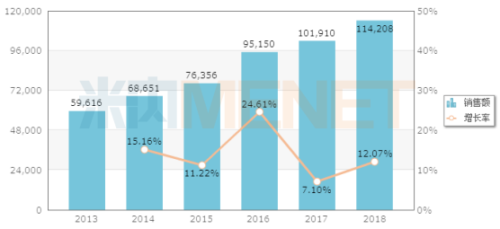 米内网数据显示,2018年在中国城市公立医院、县级公立医院、城市社区中心及乡镇卫生院(简称中国公立医疗机构)终端布洛芬销售额达11.42亿元,同比增长12.07%。在剂型格局方面,布洛芬的溶液剂市场份额占比最大,达41.19%;其次是胶囊剂34.22%和片剂12.44%。