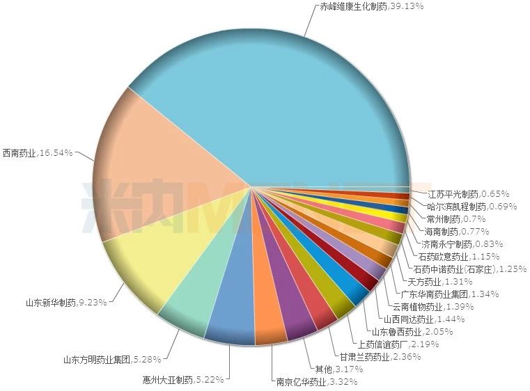 布洛芬的剂型众多,以片剂的竞争最为激烈。目前,批文数超过400个,生产厂家超过300家。2018年赤峰维康生化制药、西南药业、山东新华制药三家企业占据片剂超过60%的市场份额。在一致性评价方面,片剂仅有石药欧意药业1家过评,宜昌人福药业和安徽环球药业的补充申请在审评审批中(在药审中心)。