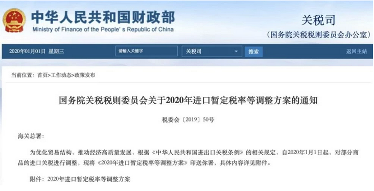 2020年1月1日起,具体有哪些器械有调整,国务院关税税则委员会在官网上发布了《2020年进口暂定税率等调整方案》通知。