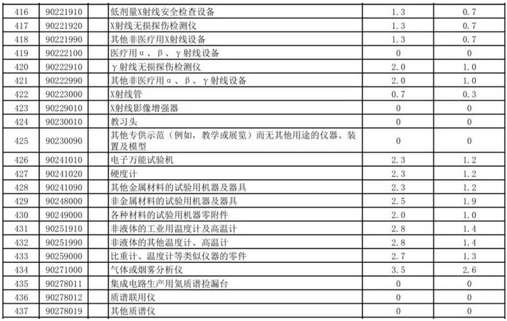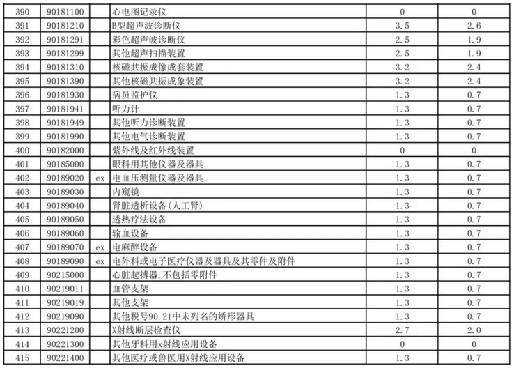 2020年7月1日起实施最慧国税率第五步降税的医疗器械