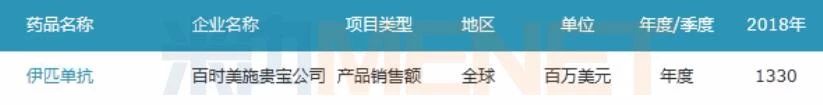 图1:伊匹木单抗(又译伊匹单抗)全球销售情况