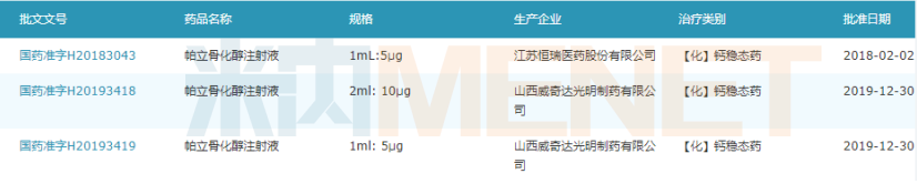 图2:帕立骨化醇注射液国产批文情况
