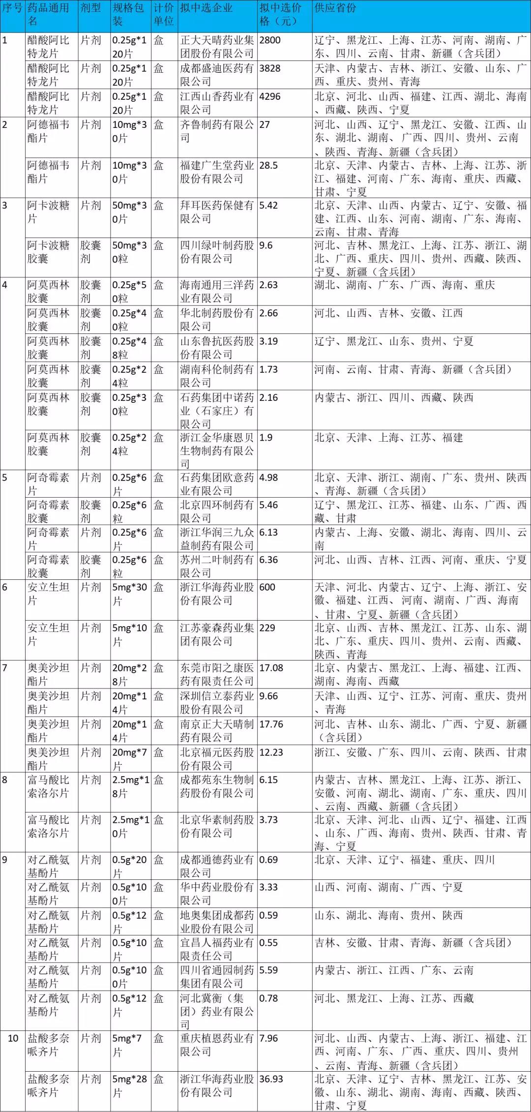 附:第二批全国药品集中采购拟中选结果表(赛柏蓝—药店经理人制图)