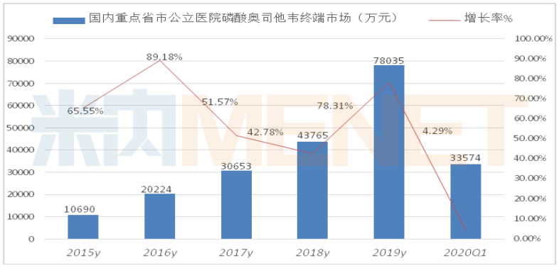 值得一提的是,2020年一季度受新冠肺炎疫情影响,中国国内人口流动性降低,医院诊疗量下降、处方量及药品销量普遍急转直下,奥司他韦在对2020年上半年的新冠病毒没有作用后,市场随之下降。在抗病毒中成药市场升温的形势下,奥司他韦同比2019年一季度增长率仅为4.27%。从目前来看,上半年奥司他韦销售额受新冠肺炎疫情影响下降,而2020年四季度的销售情况,仍需拭目以待。