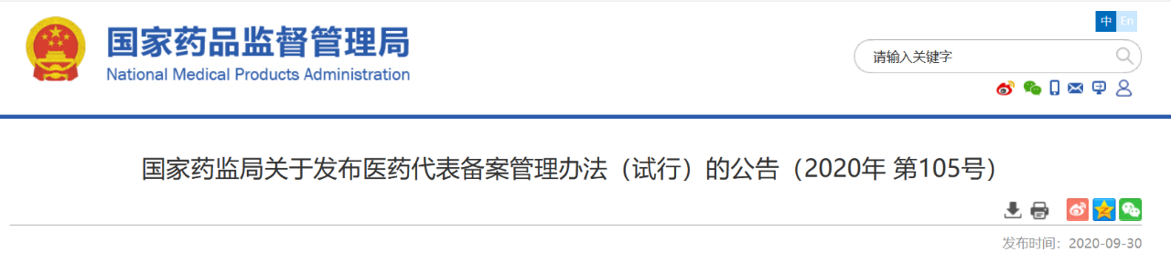 9月30日,国家医保局发布关于医药代表备案管理办法(试行)的公告: