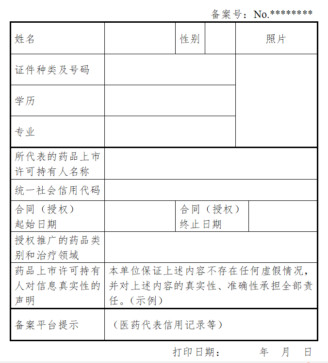附:医药代表备案信息表(样式)