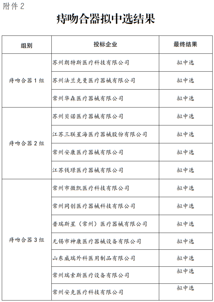 同是12月1日,江苏省医保局发布《关于江苏省第四轮公立医疗机构医用耗材联盟带量采购谈判结果的公示》显示(文末附拟中选械企名单):