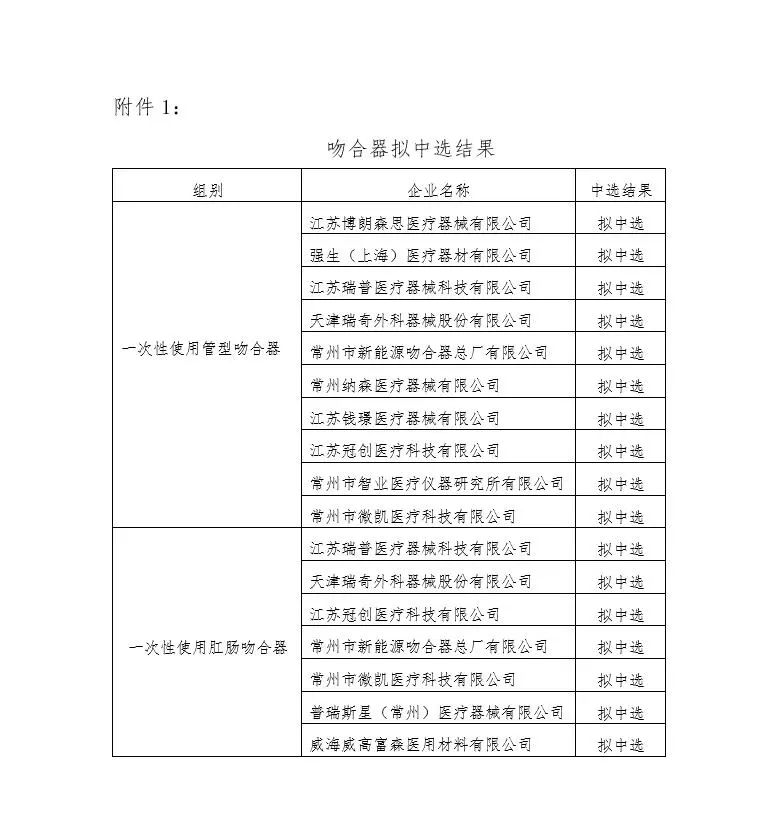 最终谈判结果显示,吻合器类耗材共有17家企业中选,胶片类耗材共有16家企业中选,补片类耗材共有17家企业中选。
