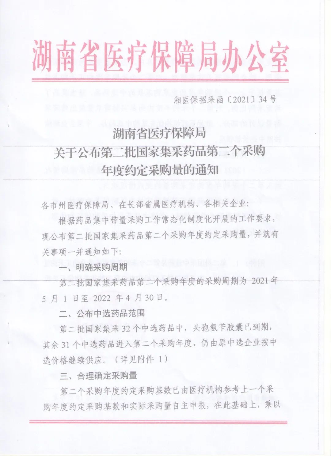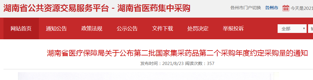 8月23日,湖南省公共资源交易服务平台发布了关于第二批国家集采药品第二个采购年度约定采购量的通知。