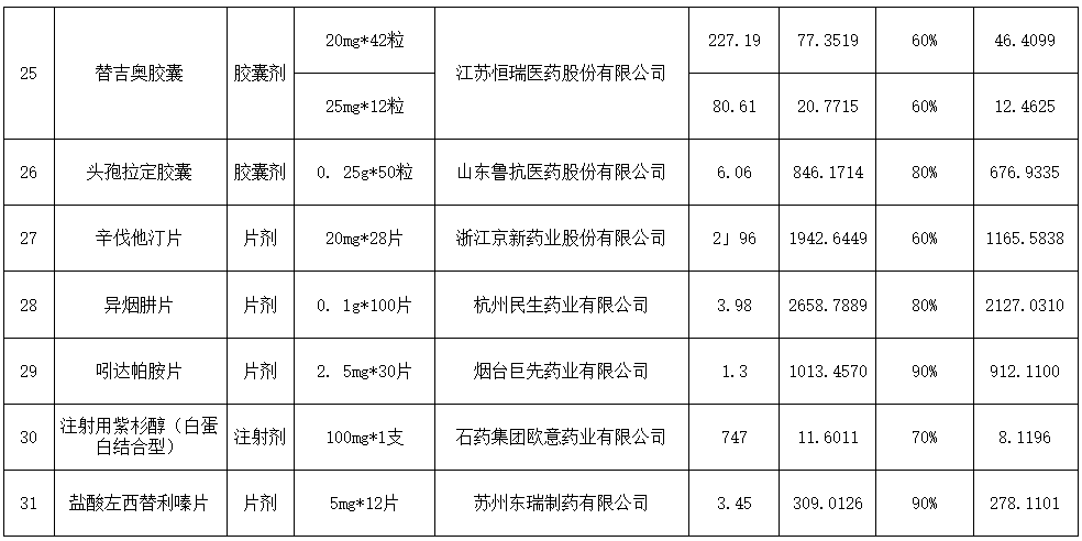 此次明确了采购周期,具体为2021年5月1日至2022年4月30日。在第二批国采中选的32个药品中,头孢氨苄胶囊已到期,其余31个中选药品进入第二个采购年度,在第二批国采中77家药企成功中标,此次续期仍由原中选企业按中选价格继续供应。另外药品的采购量和其他事项如下: