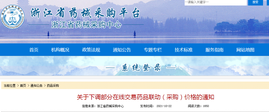 10月22日,浙江省药械采购平台发布了一则关于下调部分在线交易药品联动(采购)价格的通知。
