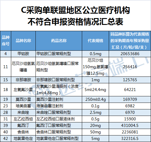 C采购单11个品种不符合申报资格,其首年预采购量纳入待分配量