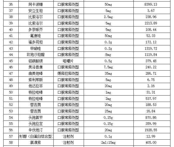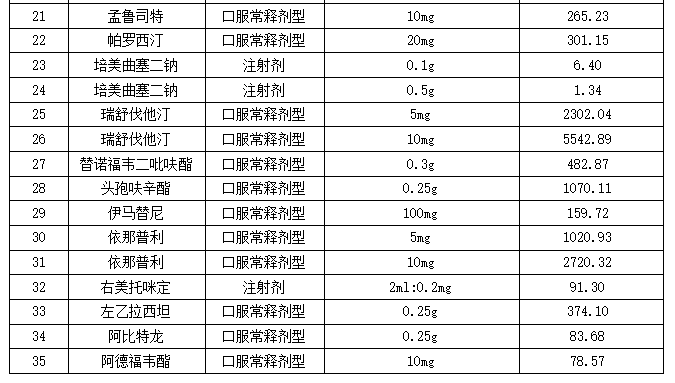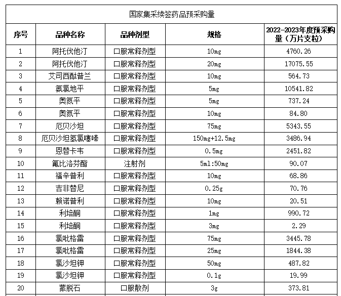 2022-2023年度集采药品续签预采购量表(年度预采购量:万片支粒)