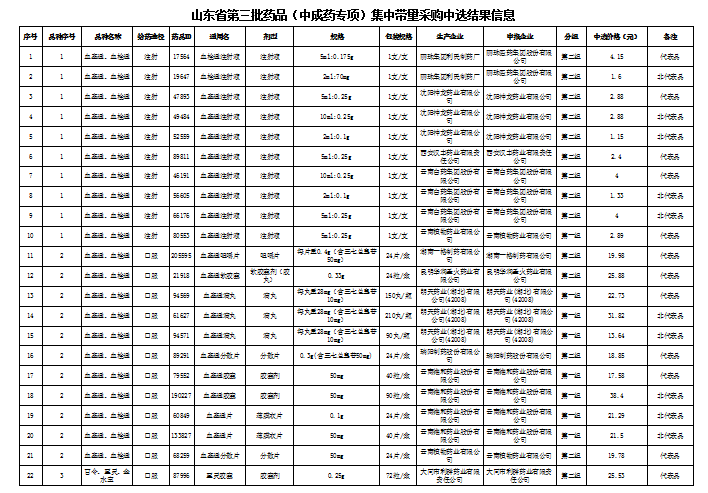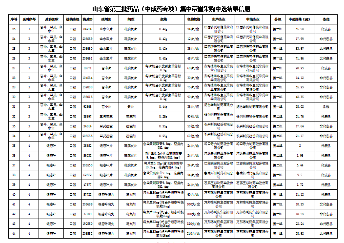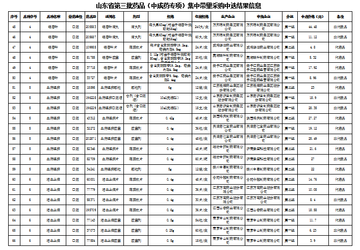 现对山东省第三批药品(中成药专项)集中带量采购中选结果予以公布。