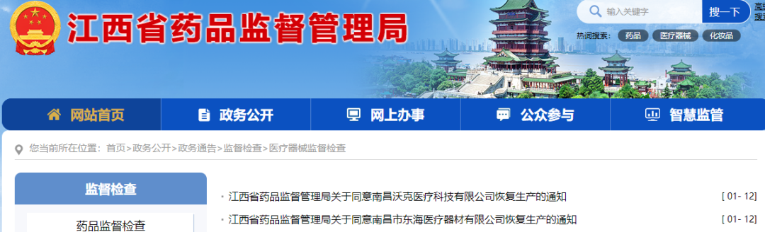 1月12日,江西省药监局发布了两则恢复生产的通知。