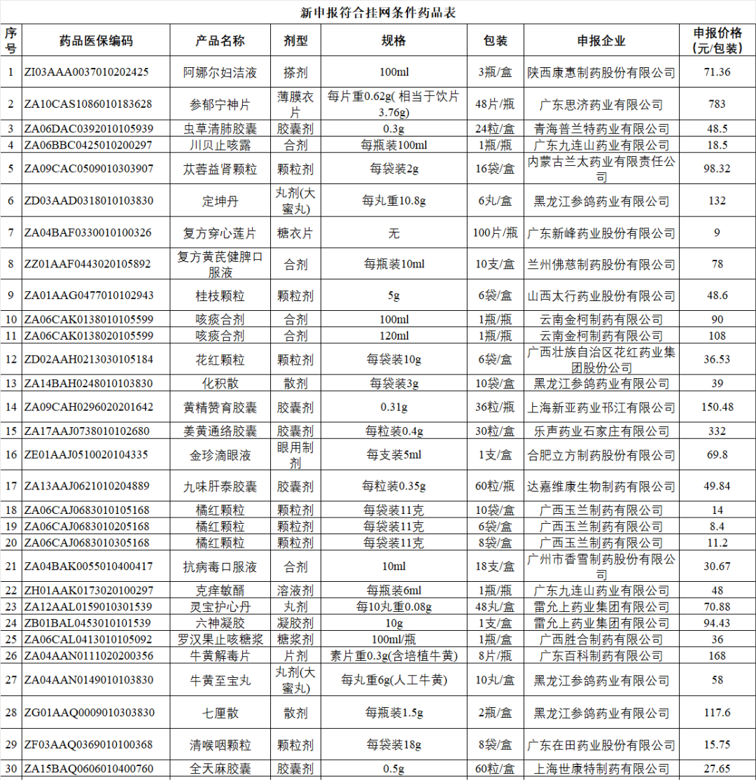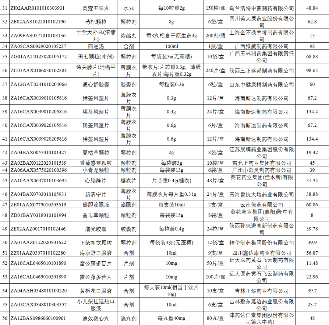 新申报符合挂网条件的中药品种56个,原遴选淘汰新申报符合挂网的中药品种3个。