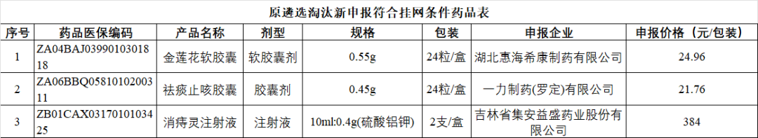 而在前一天,也就是1月15日,河北省医疗保障局医药集中采购网出台了《关于公布新增符合挂网中成药的通知》,发布了《新申报符合挂网条件药品表》(附件3)和《原遴选淘汰新申报符合挂网条件药品表》(附件4)。