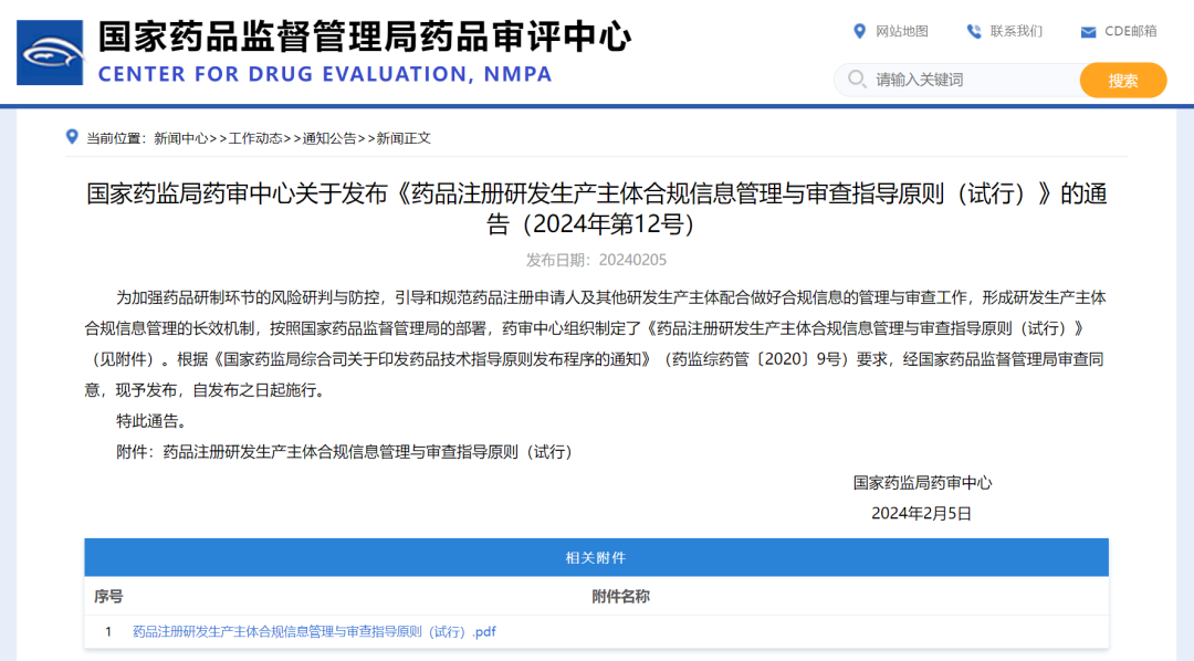 CDE发布《药品注册研发生产主体合规信息管理与审查指导原则(试行)》,药品研究活动的合规性直接影响药品的安全、有效、质量可控。事关每个药企,涉及到药学研制与生产、药物临床试验、药理毒理学研究等。