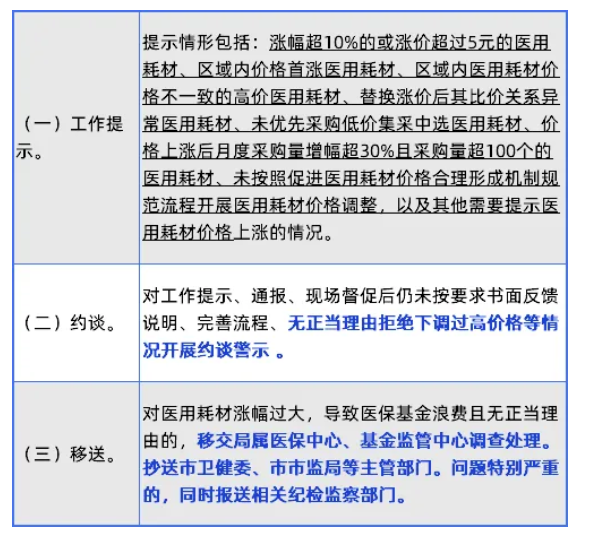 特别值得注意的是,本次被监控的医用耗材要求十分严格,比如涨幅超10%的或涨价超过5元的医用耗材、区域内价格首涨医用耗材、未优先采购低价集采中选医用耗材、价格上涨后月度采购量增幅超30%且采购量超100个的医用耗材,均包含在内。