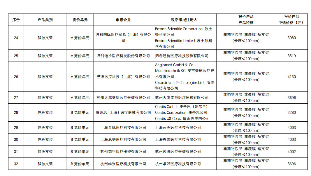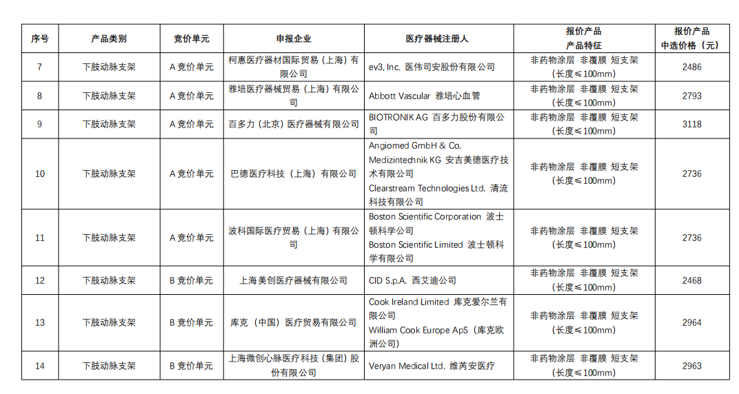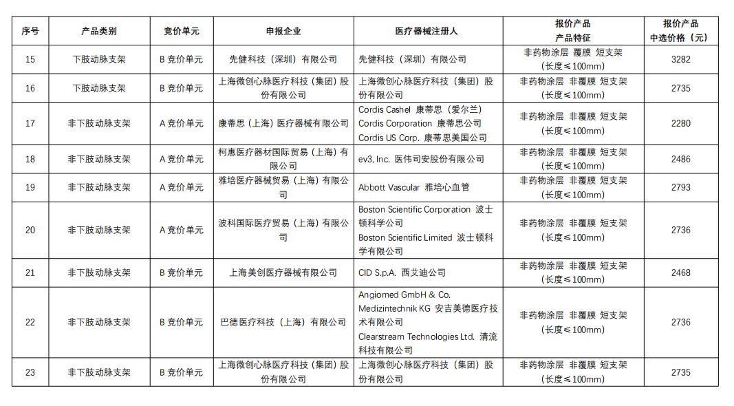 附件:国家组织人工耳蜗类及外周血管支架类医用耗材集中带量采购中选结果
