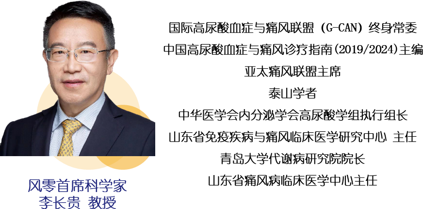 李长贵教授不仅是国内痛风研究的领军人物,还是国际高尿酸血症与痛风联盟(G-CAN)终身常委,他带领团队在痛风防治领域创造了多个“中国第一”:建立了国内第一个也是最大的国家级痛风遗传资源库、开发了第一个痛风智慧诊疗系统、第一部本土高尿酸血症与痛风诊疗指南……