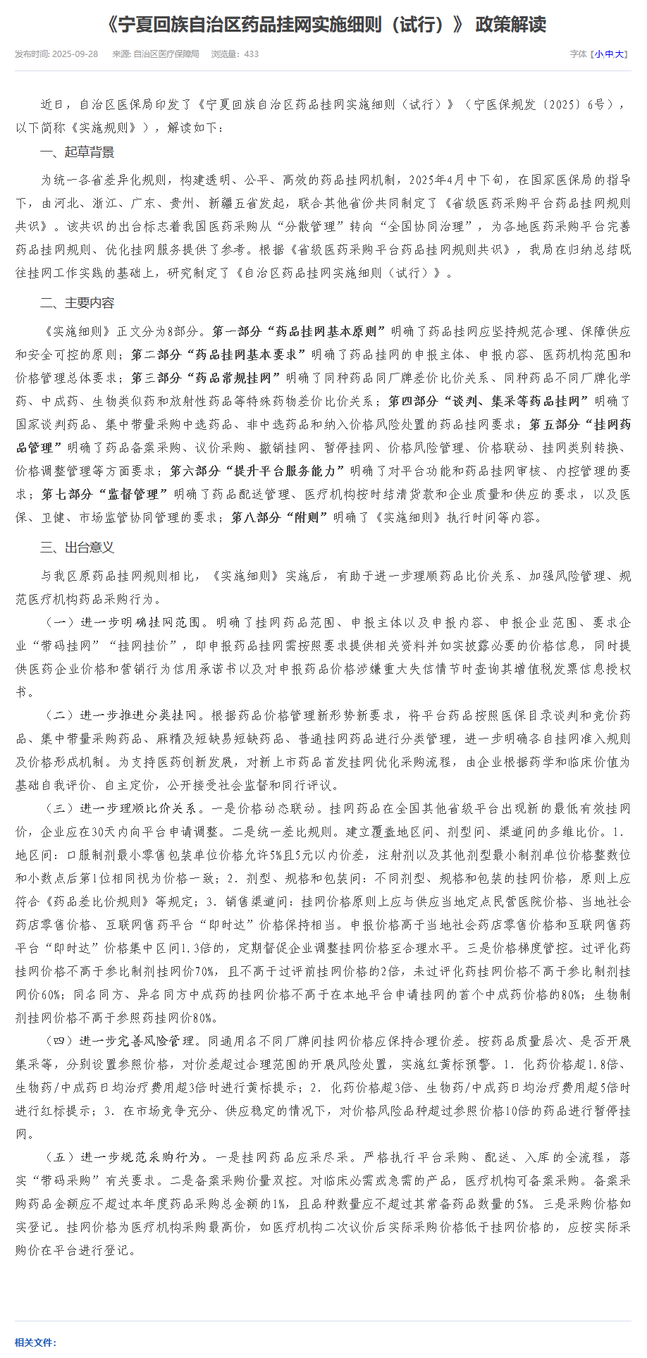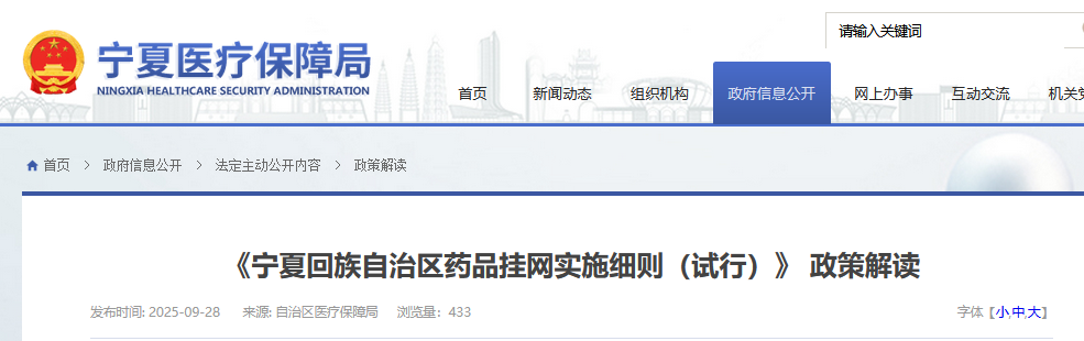 9月28日,宁夏回族自治区医保局正式印发《药品挂网实施细则(试行)》。