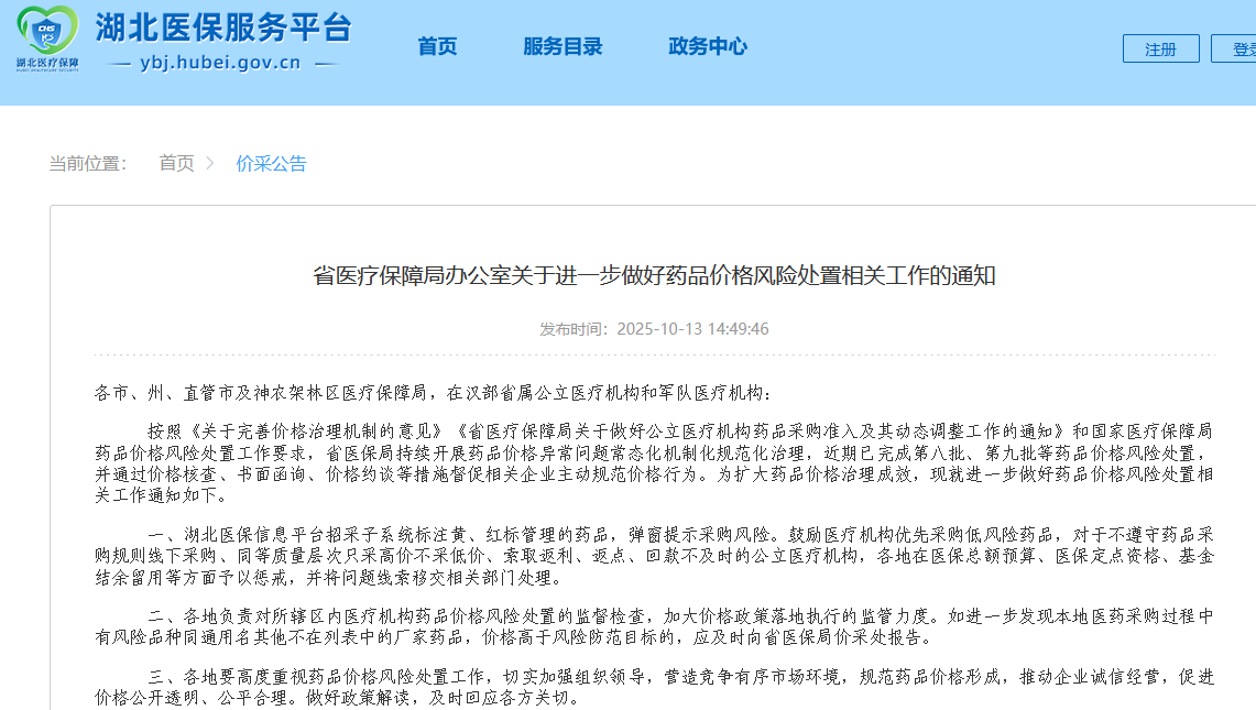 (含目录)10月13日 湖北医保新政:加强药品价格风险管控! |
