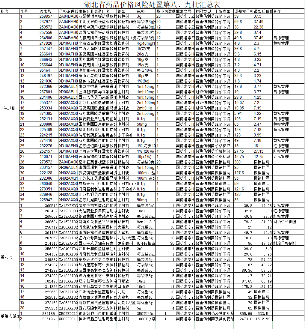 附件:湖北省药品价格风险处置第八、九批汇总表.xls