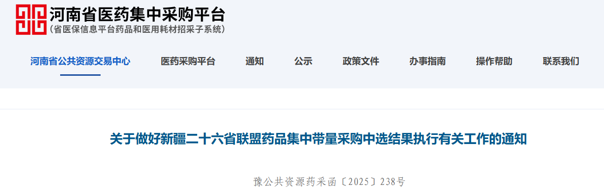 2025年10月15日,河南省公共资源交易中心发布《关于做好新疆二十六省联盟药品集中带量采购中选结果执行有关工作的通知》,标志着这场覆盖全国超半数省份的药品集采正式进入河南落地倒计时。通知明确要求,全省各级医疗机构、中选药品生产企业及配送企业必须在10月29日前完成信息维护、配送关系建立和合同签订等关键工作,确保10月31日集采结果全面执行。