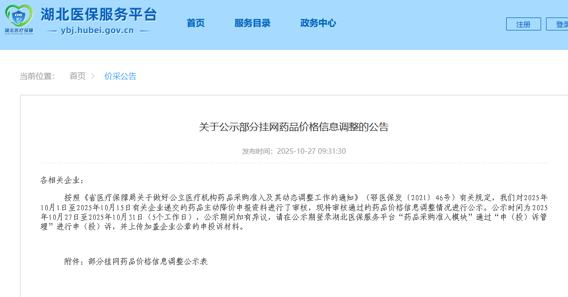 (含目录)10月27日 湖北医保局紧急公示药品降价结果 企业申诉仅剩5个工作日! |