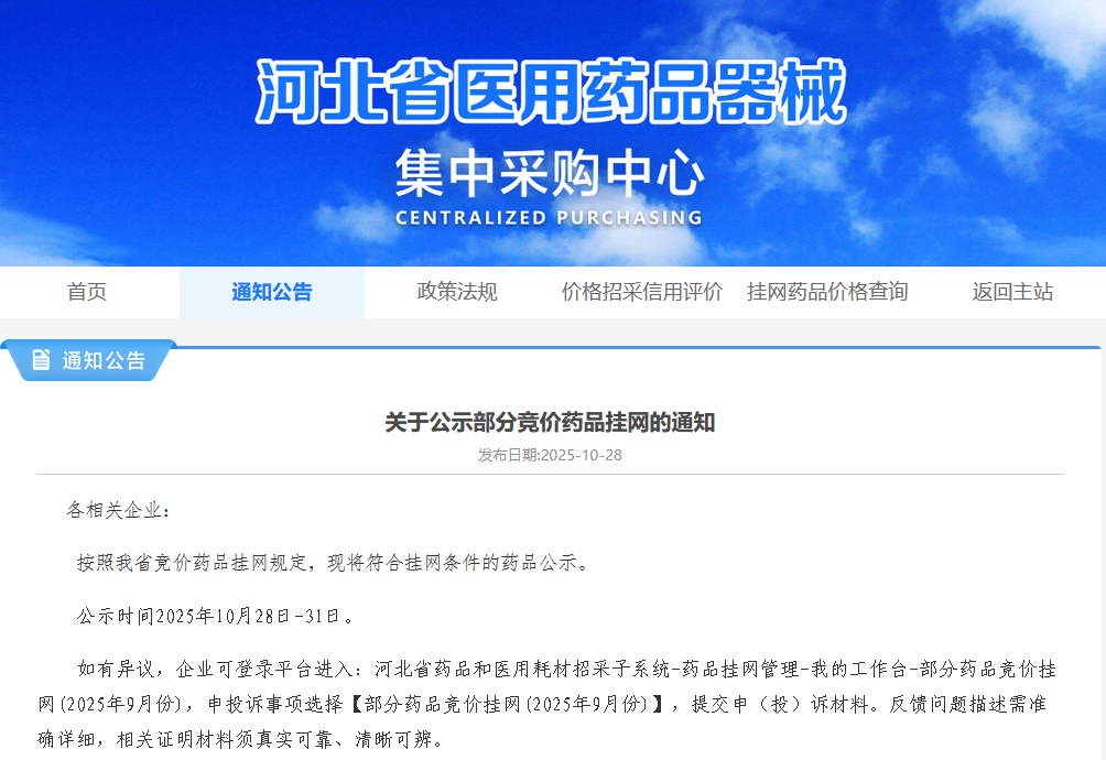 (含目录)10月28日 河北药品竞价挂网公示启动 企业异议申报仅剩3天! |
