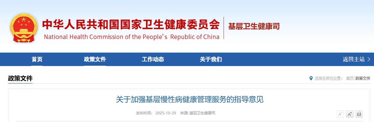 国家卫健委正式发布《关于加强基层慢性病健康管理服务的指导意见》(国卫基层发〔2025〕15号),这份文件将彻底改变数亿慢性病患者的就医体验!文件明确提出,到2027年,开展紧密型医联体建设的县(市、区)要基本实现基层慢性病健康管理全流程服务,而到2030年,这个服务模式将在全国基层广泛应用。
