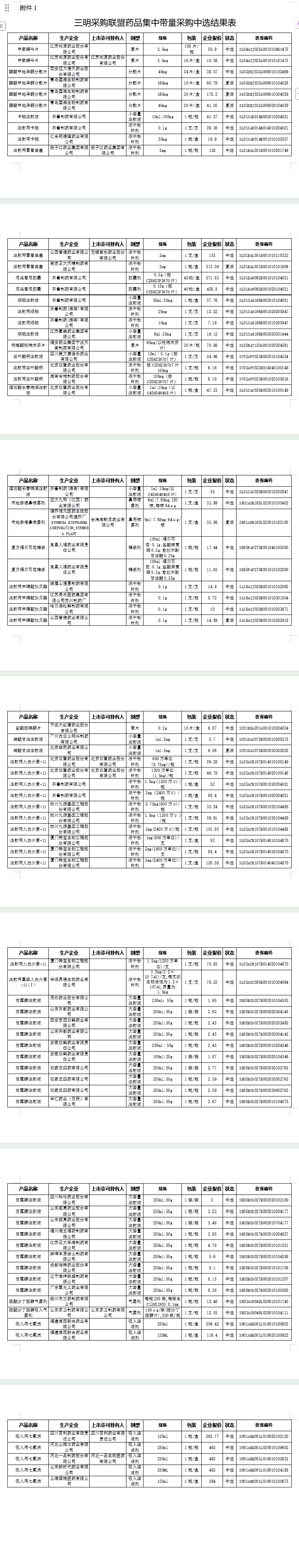 附件1.三明采购联盟药品集中带量采购中选结果表.doc