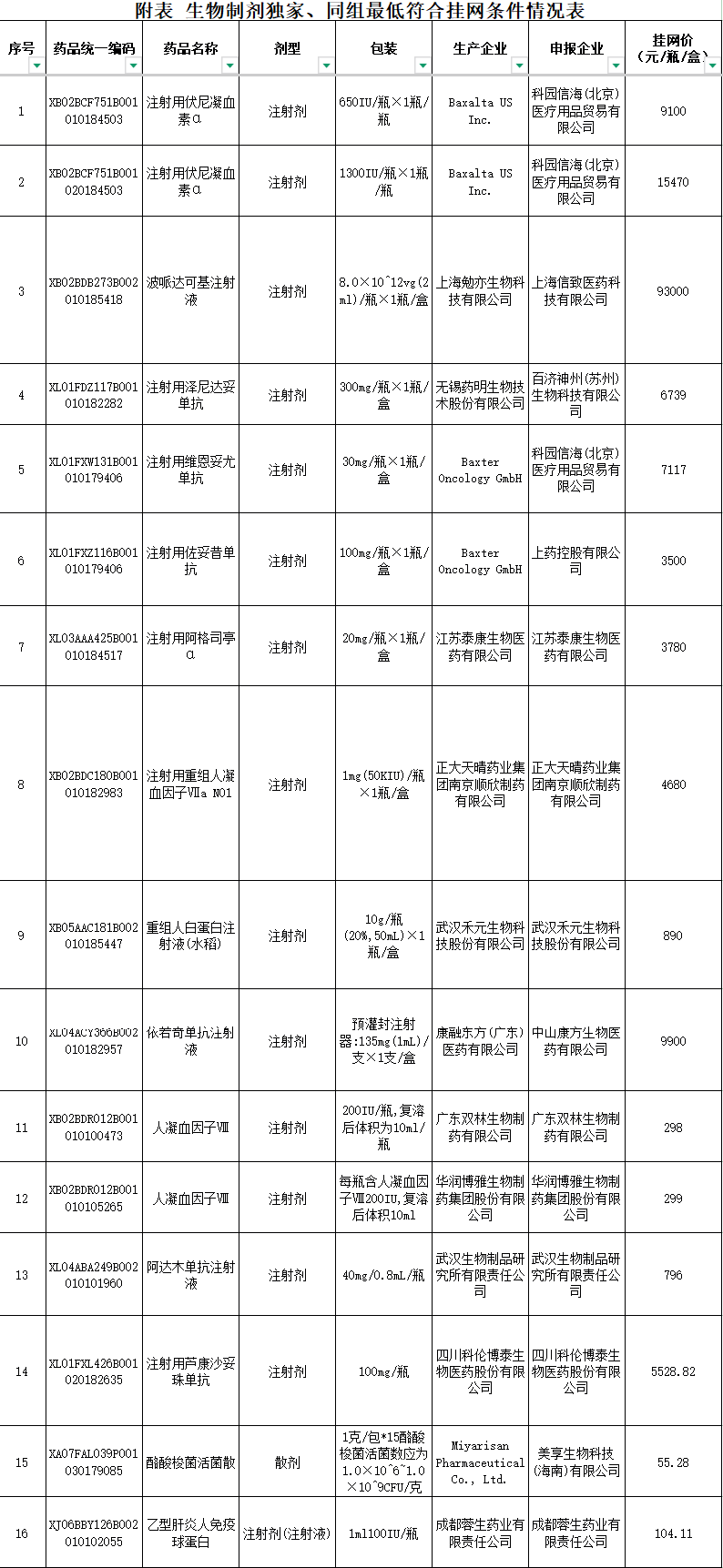 附件:生物制剂独家、同组最低符合挂网条件情况表.xlsx