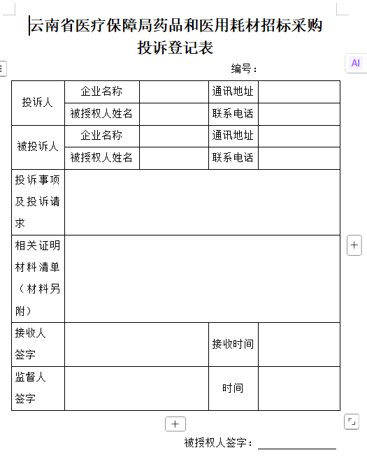附件2:云南省药品和医用耗材招标采购业务投诉登记表.doc