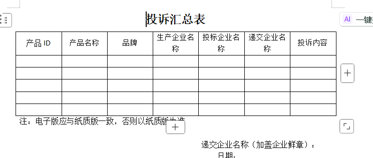 投诉资料清单表(附件3,需同时提交U盘电子版)