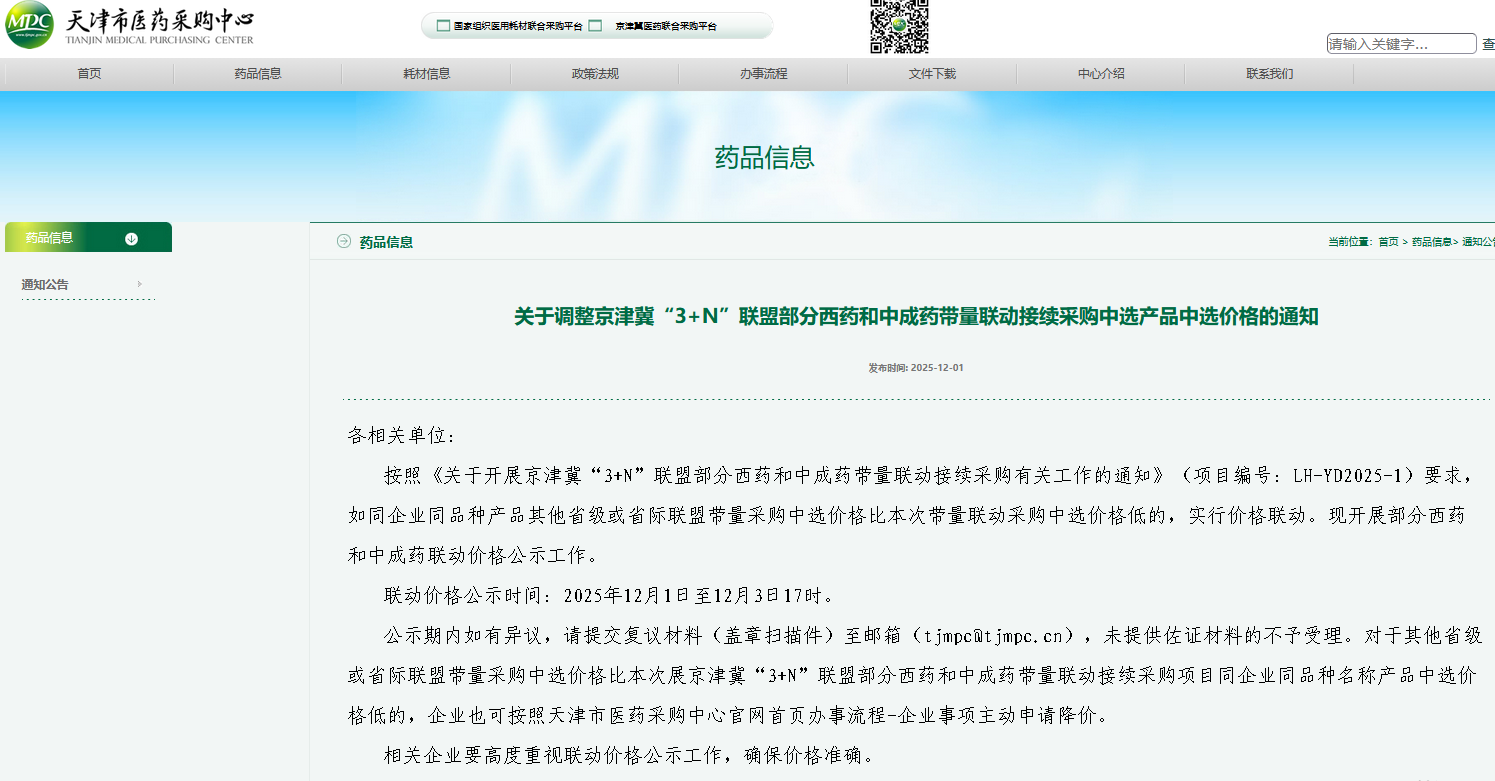 (含目录)12月2日 京津冀药品集采再出调价新政 天津启动价格联动公示! |
