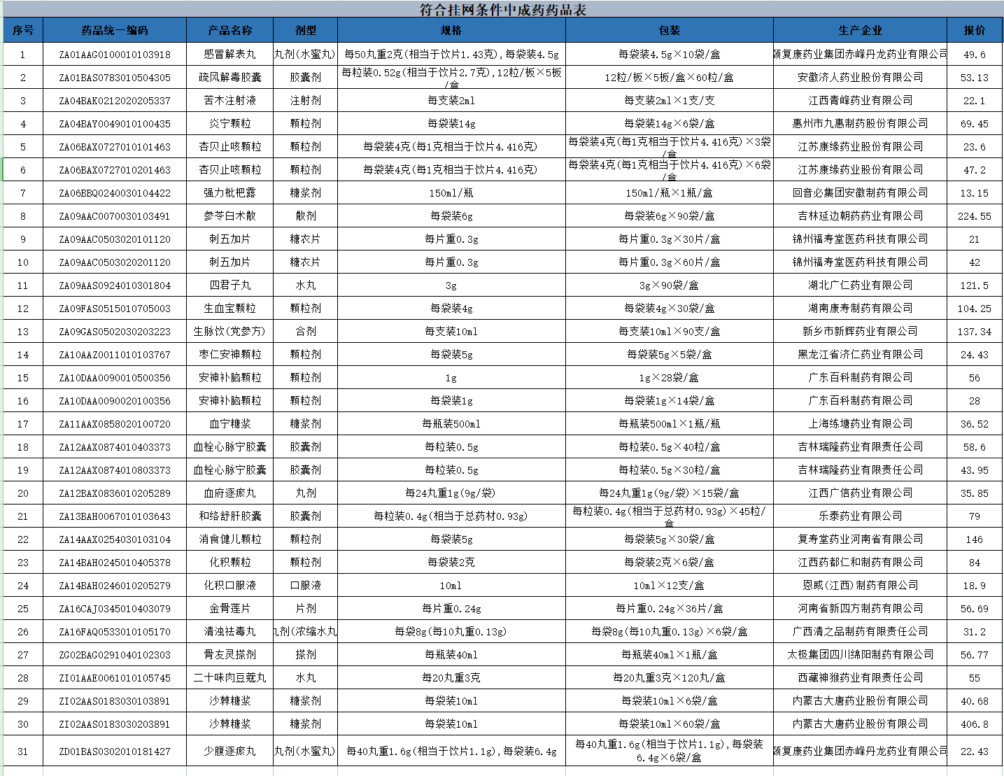 附件:符合挂网条件中成药公布表.xls