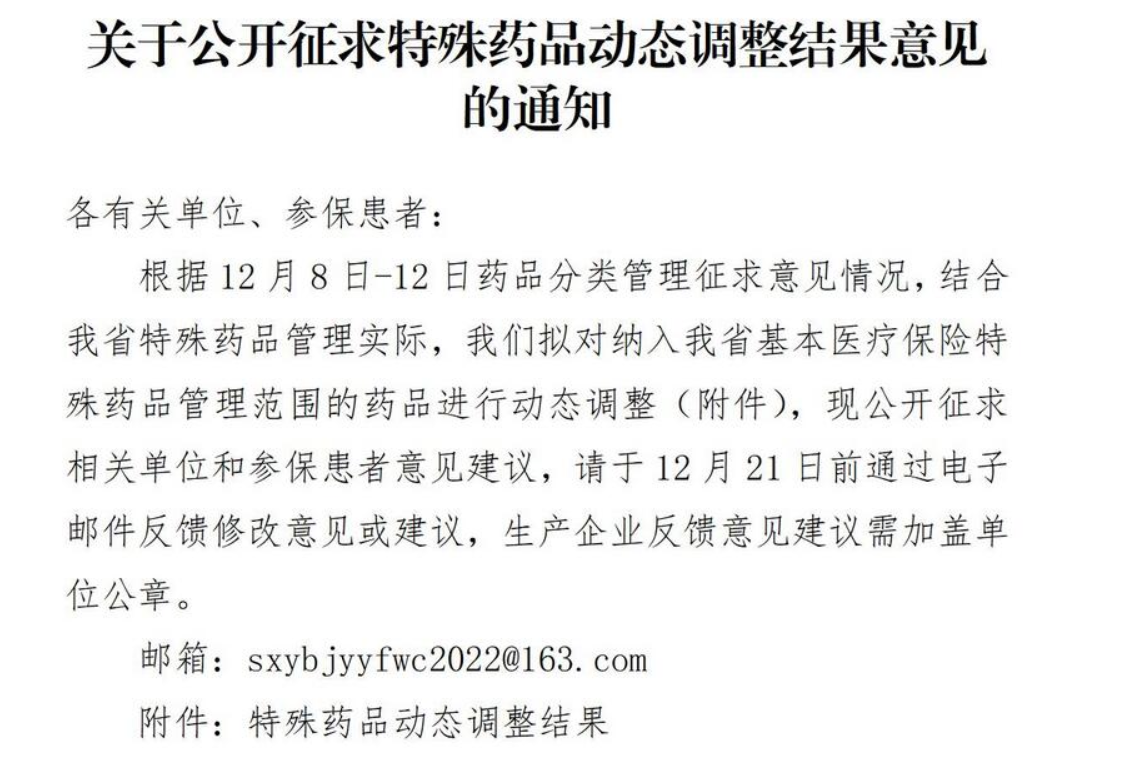 12月17日 重磅通知!陕西省特殊药品动态调整结果 公开征求意见!
