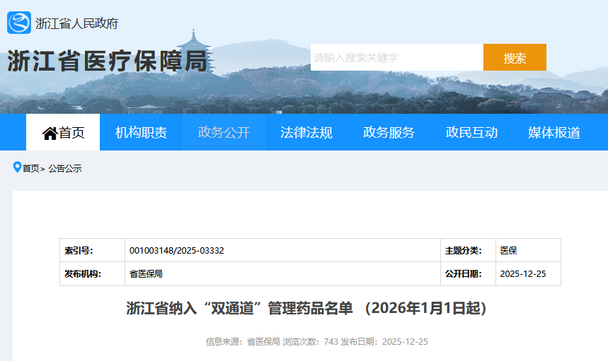 2025年12月25日,浙江省医疗保障局发布重磅通知,宣布自2026年1月1日起全面调整"双通道"管理药品名单。