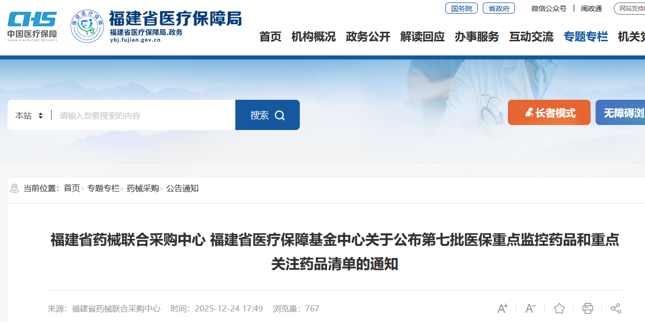 福建省药械联合采购中心 福建省医疗保障基金中心 2025年12月24日