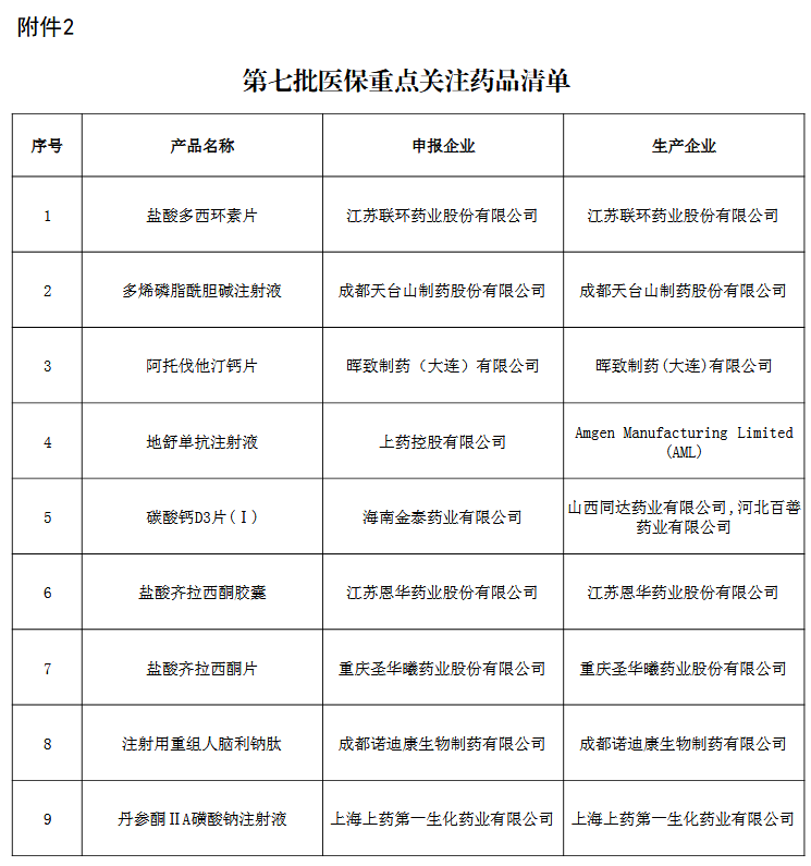 福建省药械联合采购中心与福建省医疗保障基金中心联合发布《第七批医保重点监控药品清单》和《第七批医保重点关注药品清单》